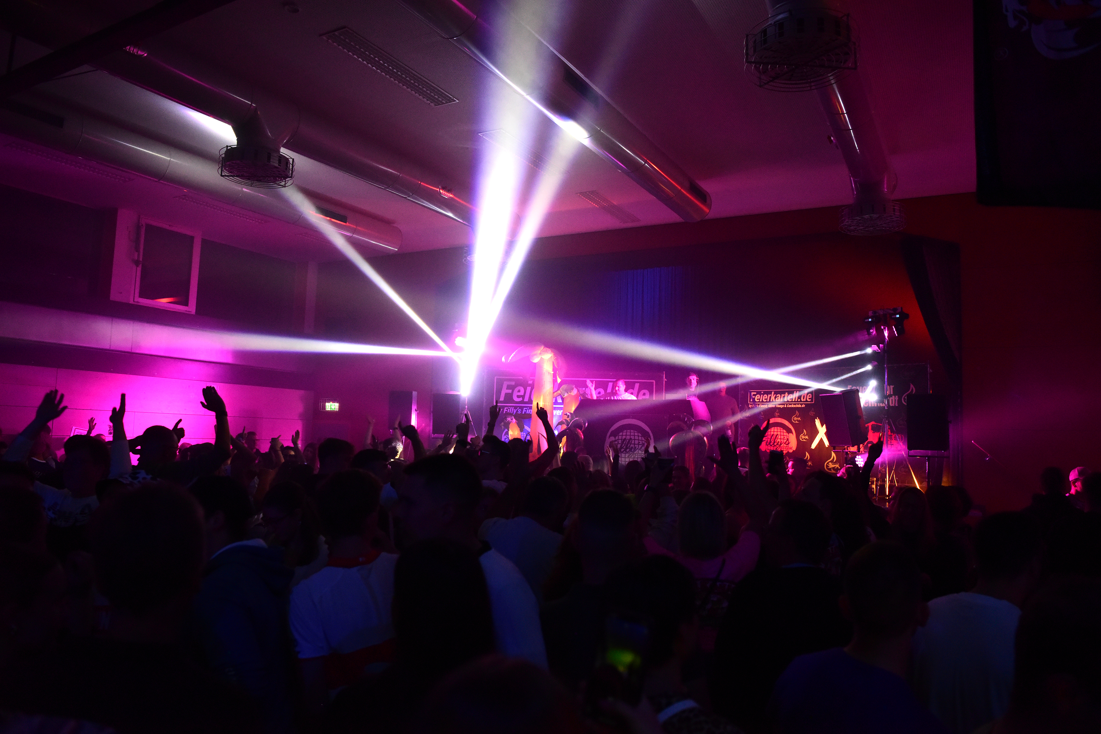 Für die "Fillys Fasnet 2025" im Löwen, Neuhausen wurde Licht- und Tontechnik bereitgestellt, die zwei Dancefloors perfekt in Szene setzte. Dank der Videoübertragung des DJs konnte seine Performance im gesamten Haus verfolgt werden, was den Gästen ein intensives Partyerlebnis bot.